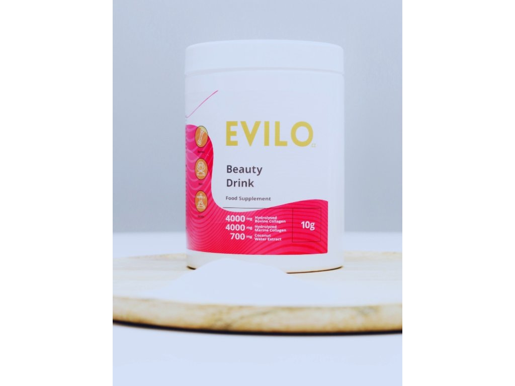 Objevte sílu Evilo Beauty Drink – lahodného kolagenového nápoje s kyselinou hyaluronovou, vitamínem C, zinkem a dalšími klíčovými látkami. Pomáhá udržet pleť mladistvou, hydratovanou a zářivou. Podporuje zdravý růst vlasů a pevnost nehtů. Ideální součást každodenní beauty rutiny.